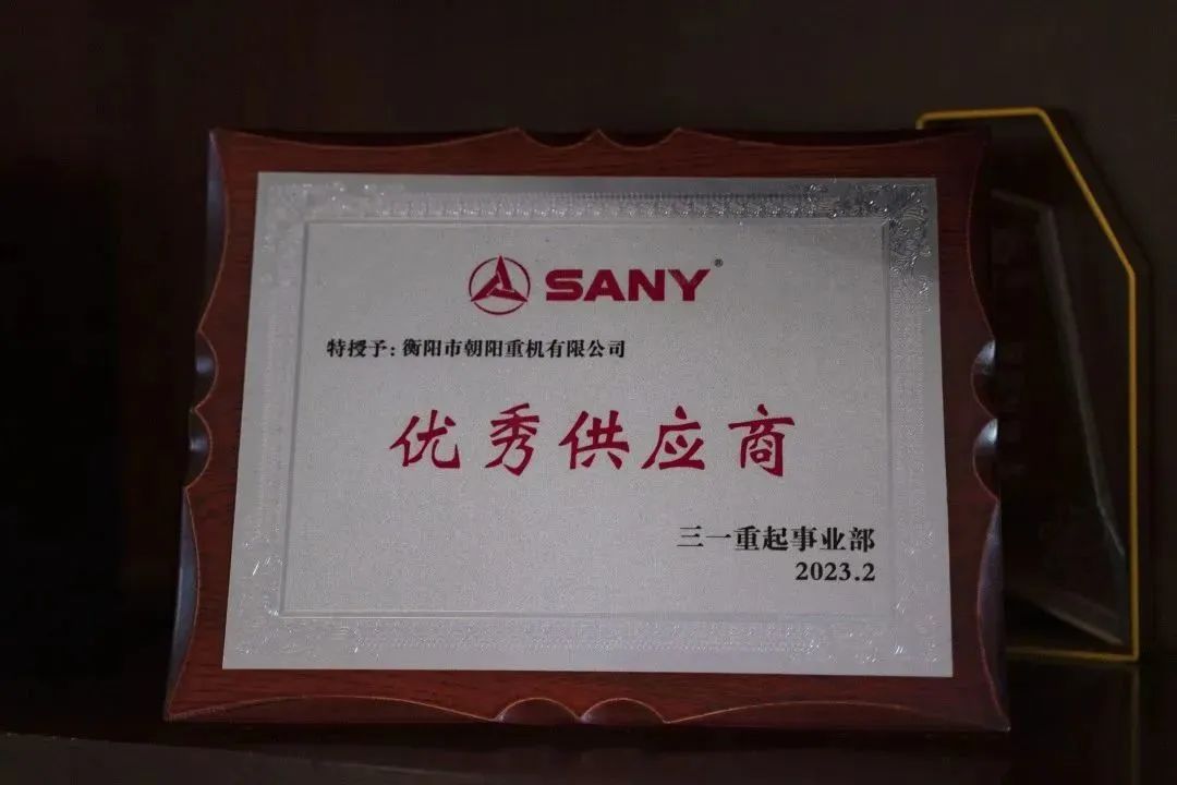 2023年2月,朝陽榮獲三一重起事業(yè)部頒發(fā)的“優(yōu)秀供應商”獎牌。這不僅是對朝陽技術研發(fā)能力的認可,更是對朝陽作為合作伙伴的絕對信任。朝陽將秉承“嚴格工藝操作,確保產品質量”的原則,始終保持技術生產水平,為三一供應優(yōu)質的高密度配重塊。